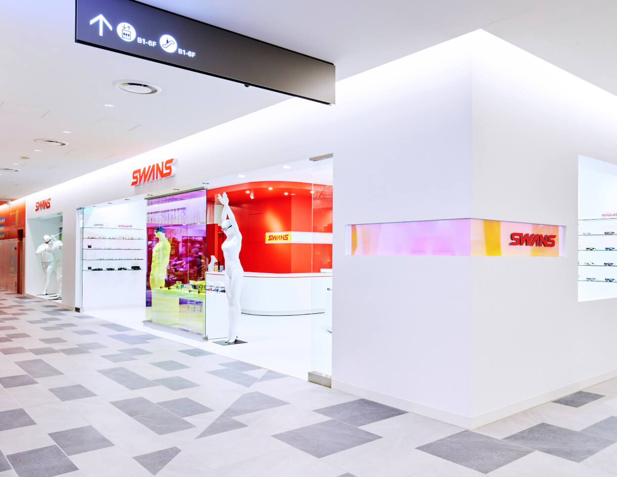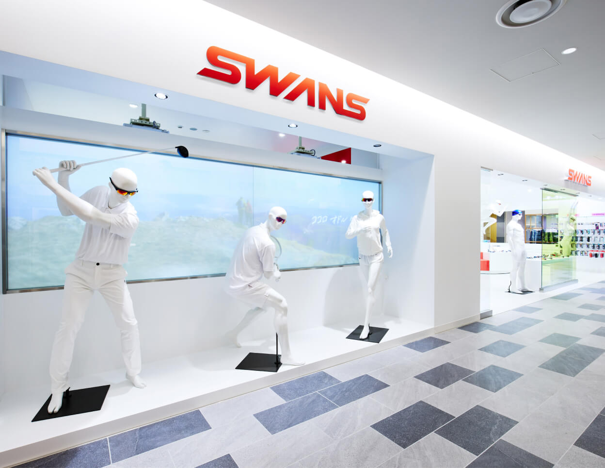 スポーツアイウェアブランド「SWANS」の旗艦店「SWANS STORE KITTE OSAKA」。ディスプレイには、Hans Boodt Mannequins の SPORT Collection を採用いただきました。