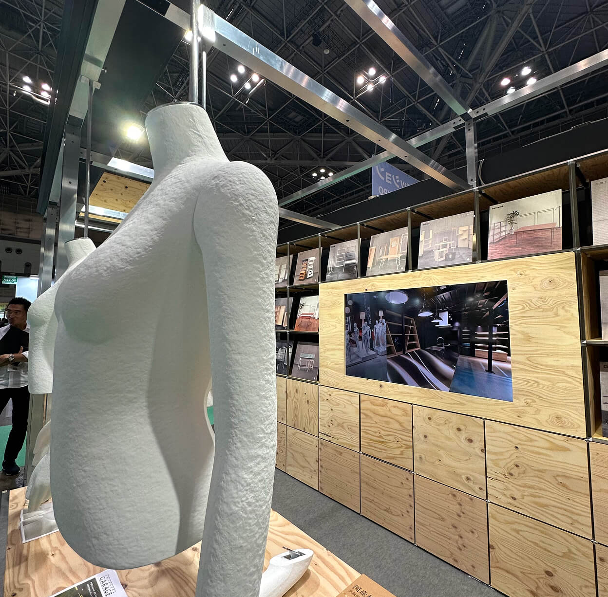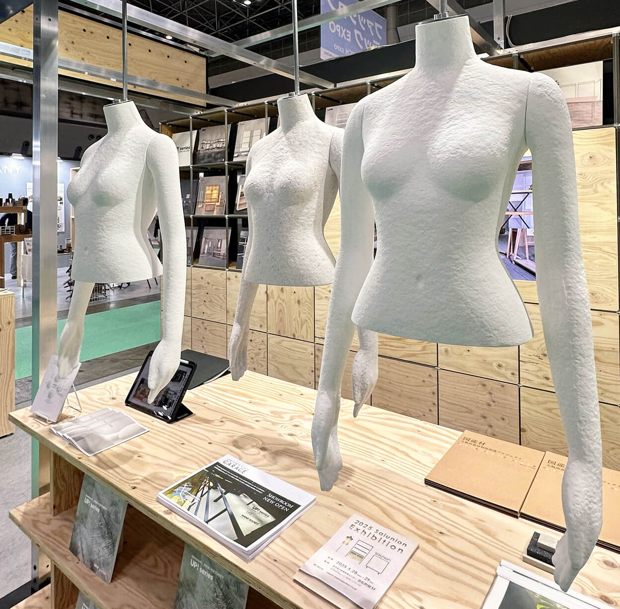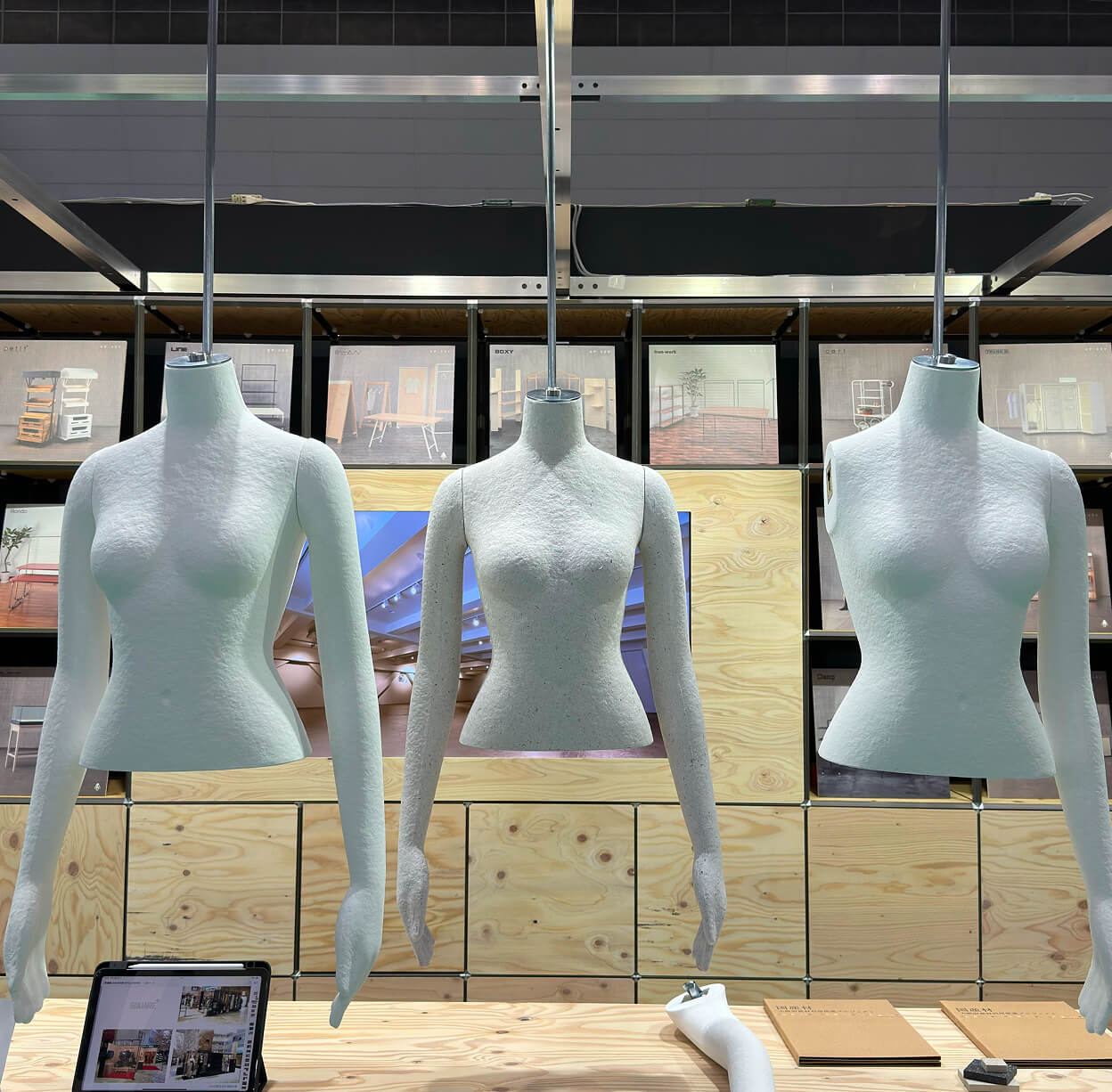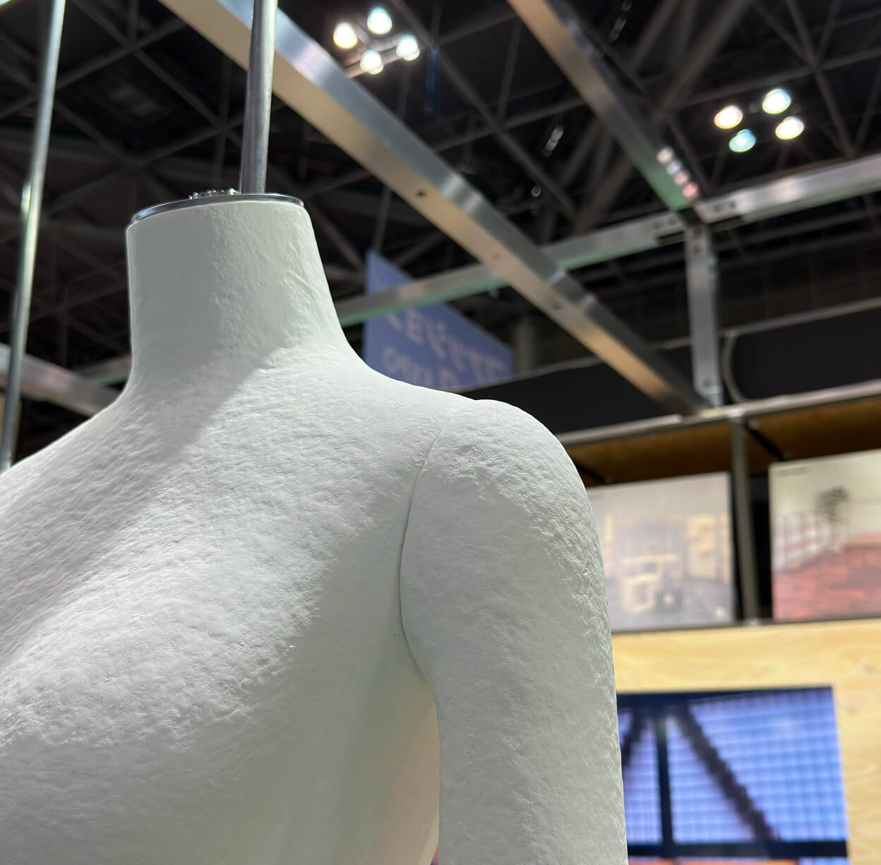 ファッション業界の今とこれからのトレンドが一同に集う、ファッションワールド東京の8展示の一つ、「第4回 サステナブルファッションEXPO」に、「KAMI tocasi」とLED什器を出展しました。ファッションの世界にもサステナブルな選択肢を、という思いから開発した紙製マネキン「KAMI tocasi」。紙製のために本体が軽いという特性を活かし、上半身だけのボディをハンギングして見せた展示は、会場で多くの反響をいただくことができました。